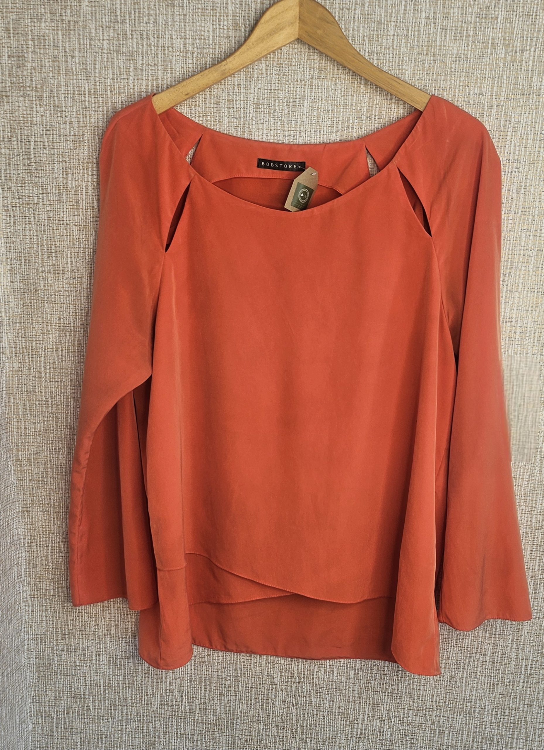 Blusa manga longa em seda Tam G