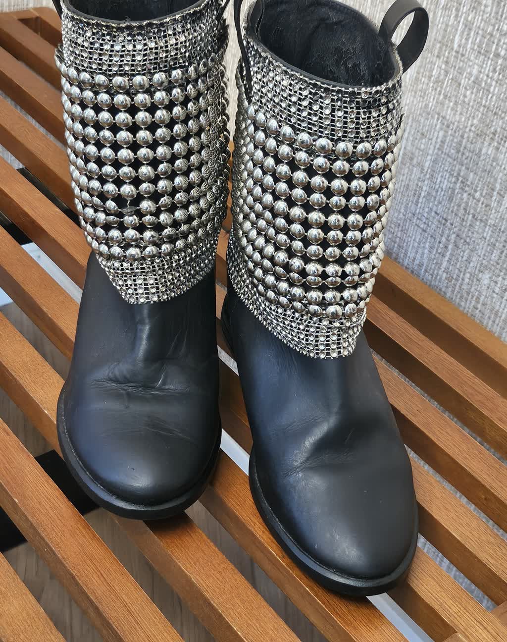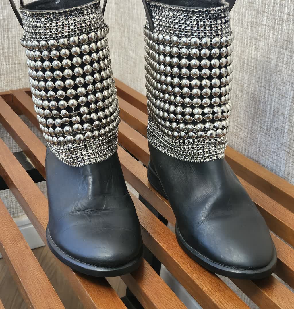 Bota em Couro Cano curto Tachinhas tam 34