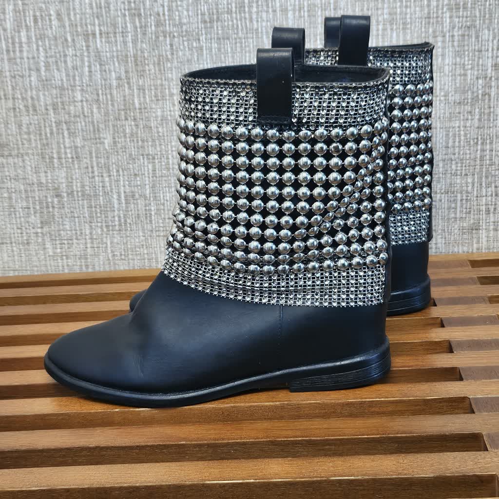 Bota em Couro Cano curto Tachinhas tam 34 quantidade