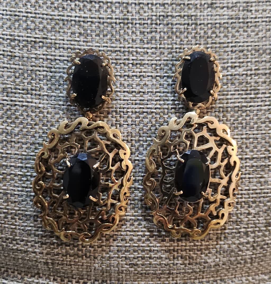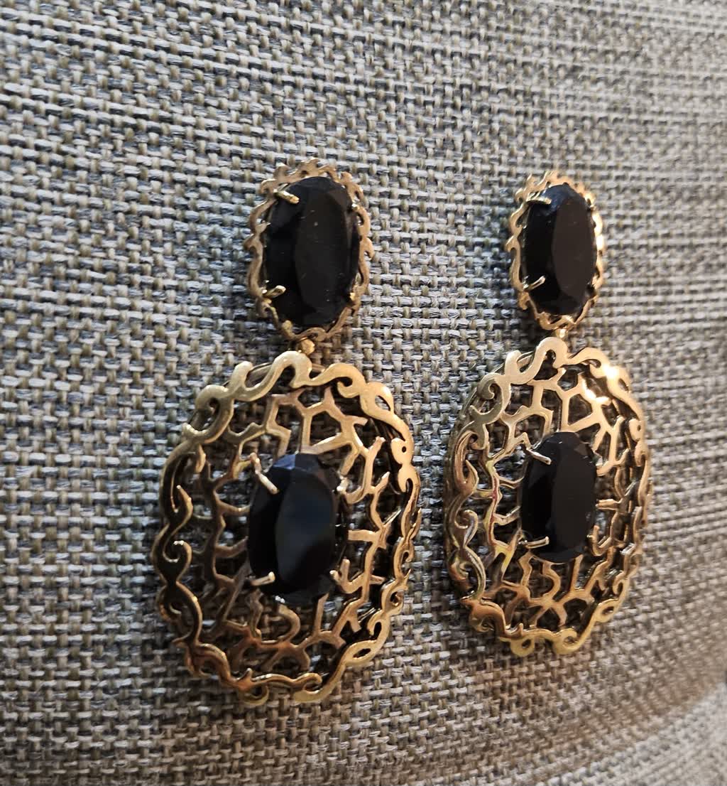 Brinco detalhe dourado com pedra preta