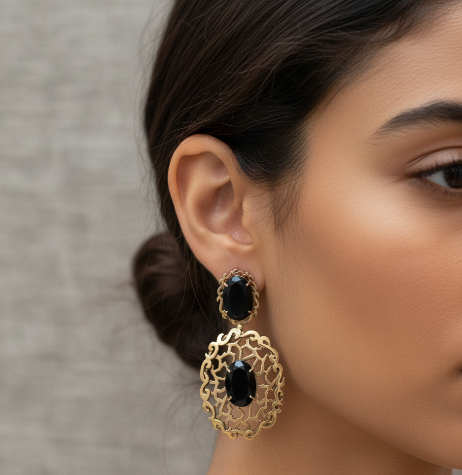 / Brinco Detalhe pedra preta