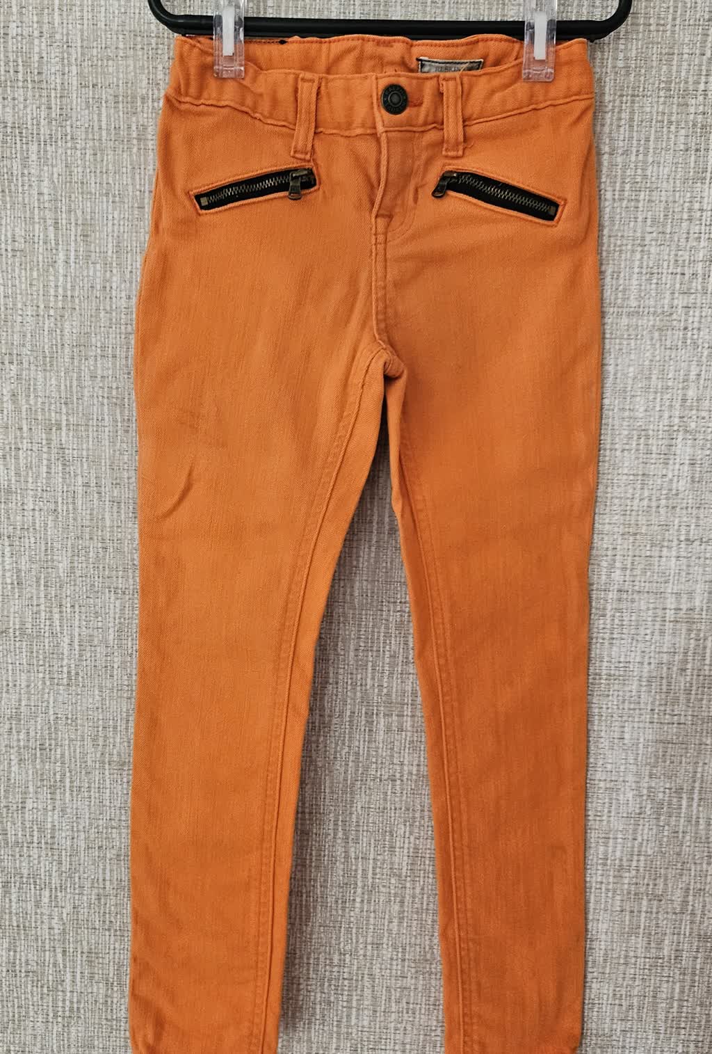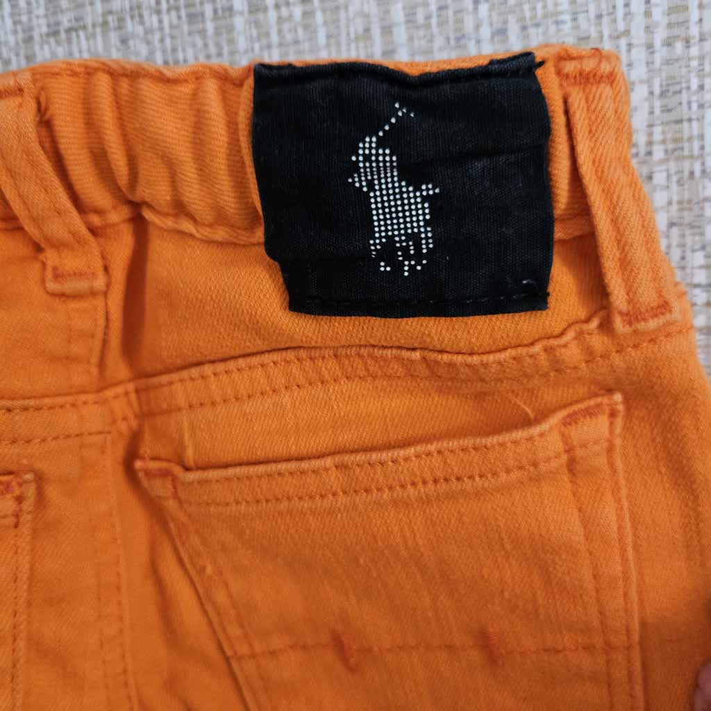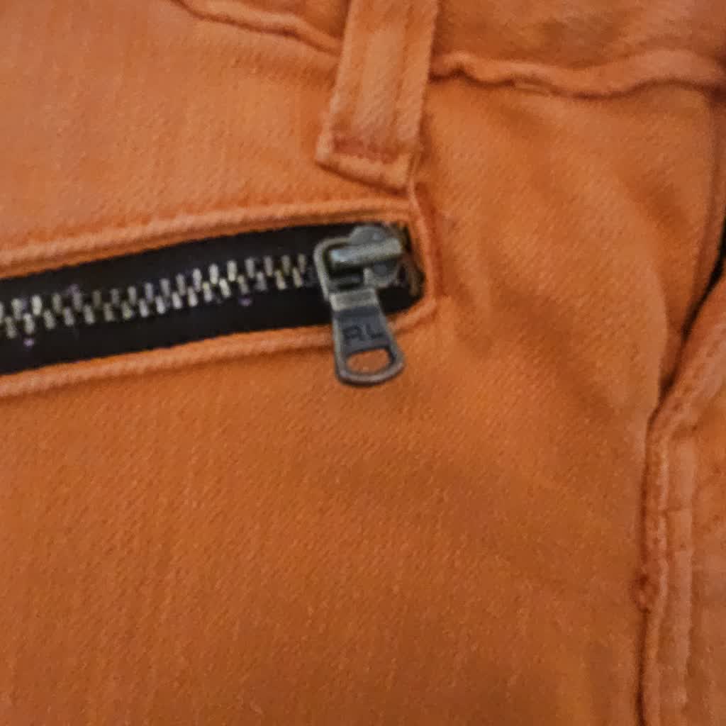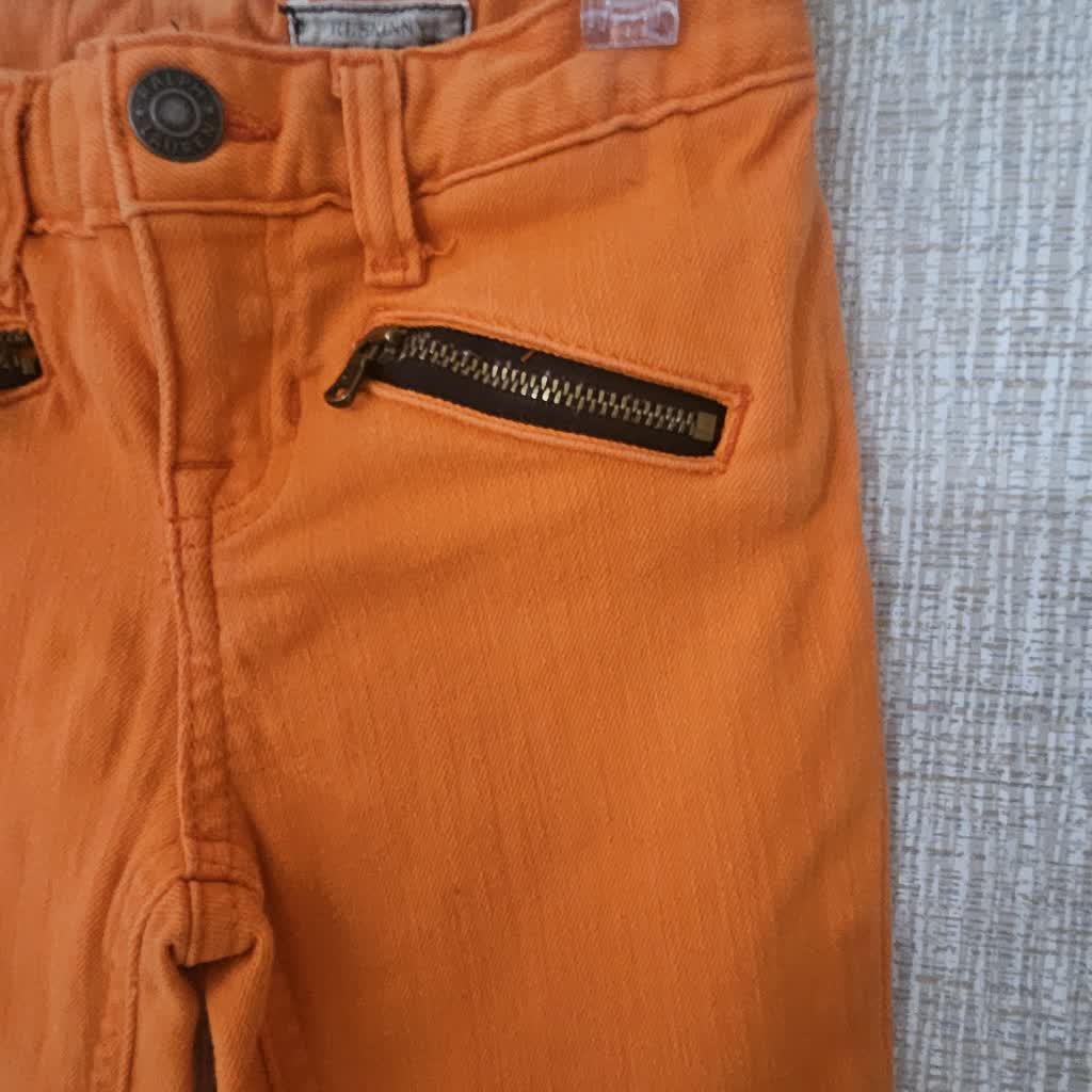 Calça laranja detalhe zíper no bolso