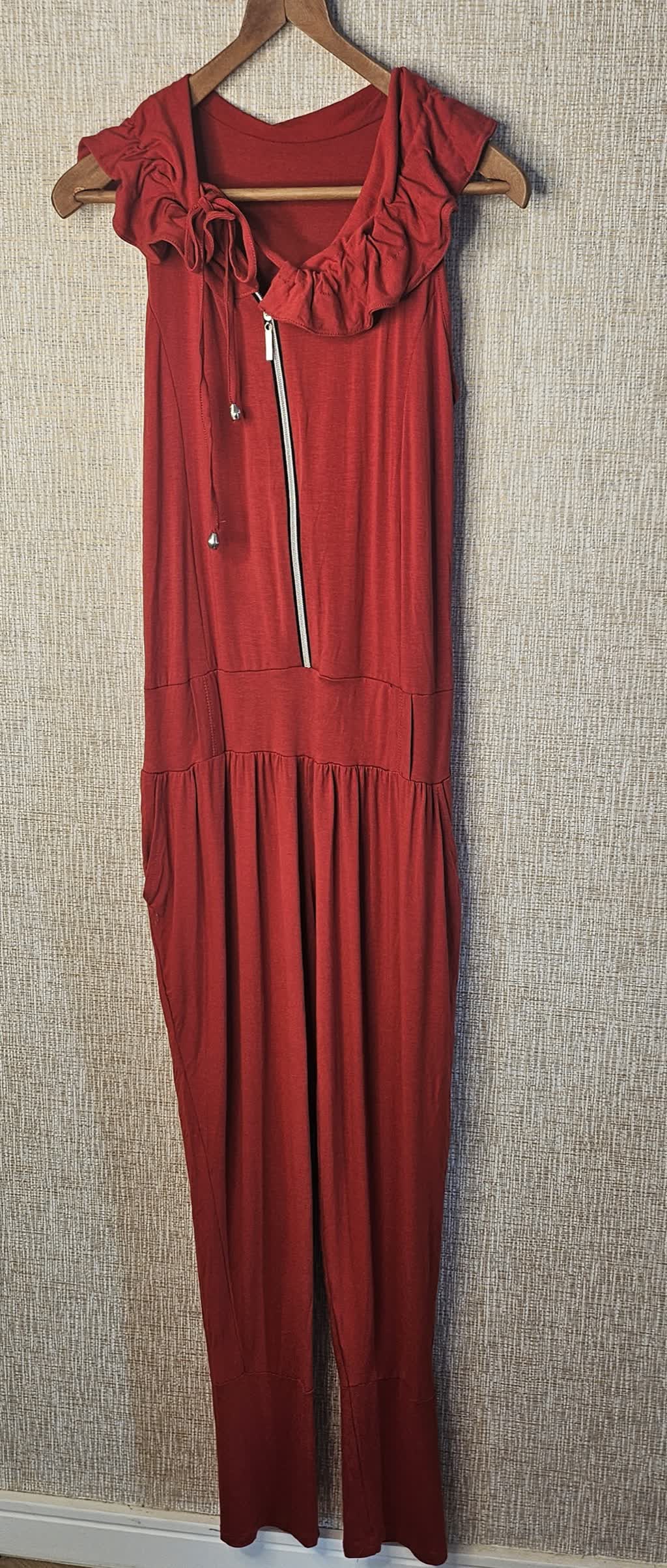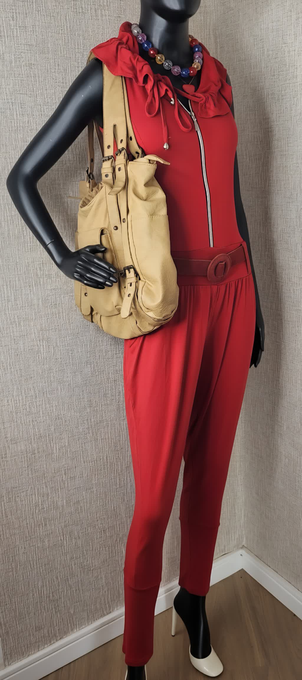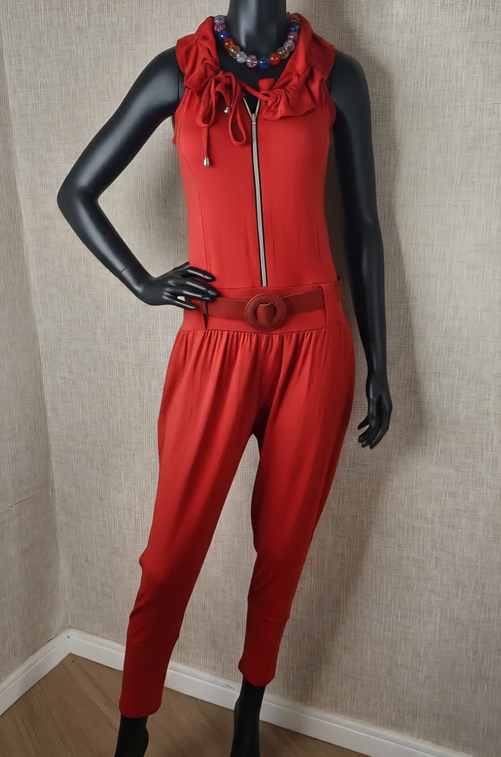 Macação vermelho detalhe em Zíper frontal