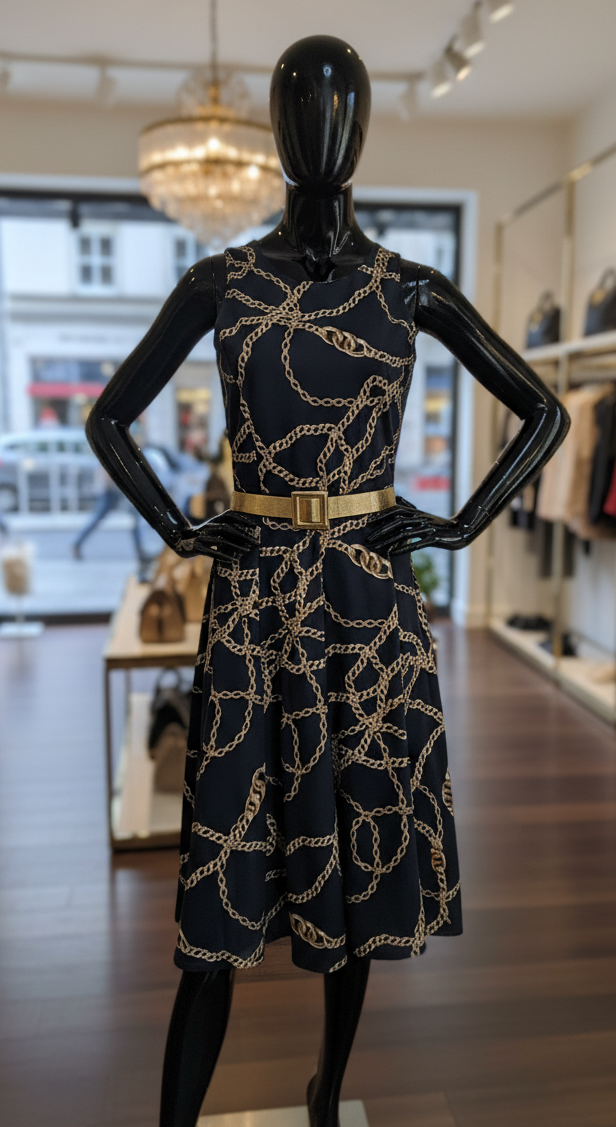 Vestido Detalhe Elos Azul/dourado